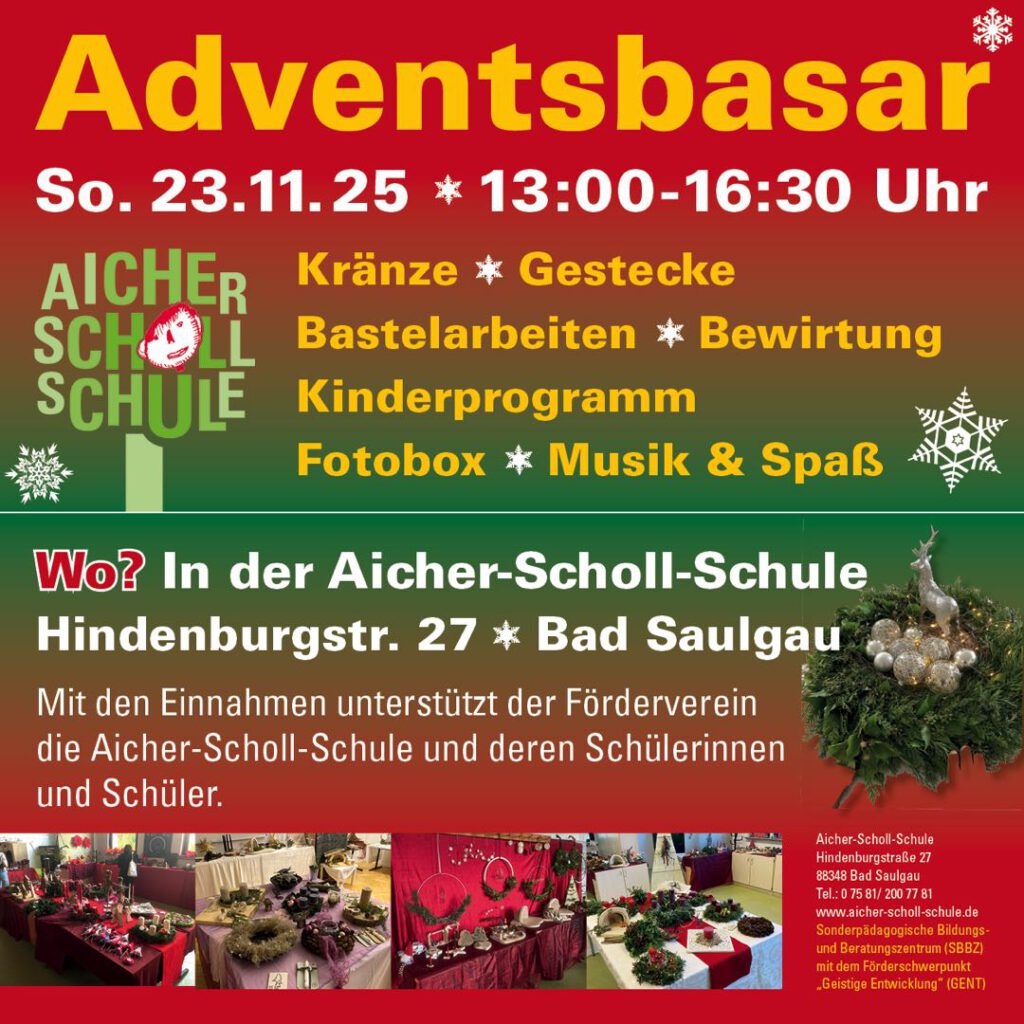 Im Namen der gesamten Schulgemeinschaft laden wir Sie herzlich zu unserem diesjährigen Adventsbasar ein. Es erwarten Sie wunderschöne Kränze, geschmackvolle Bastelarbeiten und vieles mehr. Für das leibliche Wohl ist bestens gesorgt. Wir freuen uns auf Ihren Besuch!